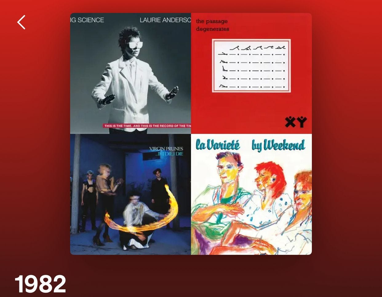Una lista de canciones publicadas en dicho año por bandas y artistas que me gustan mucho